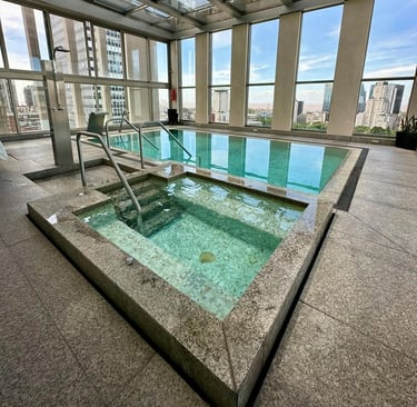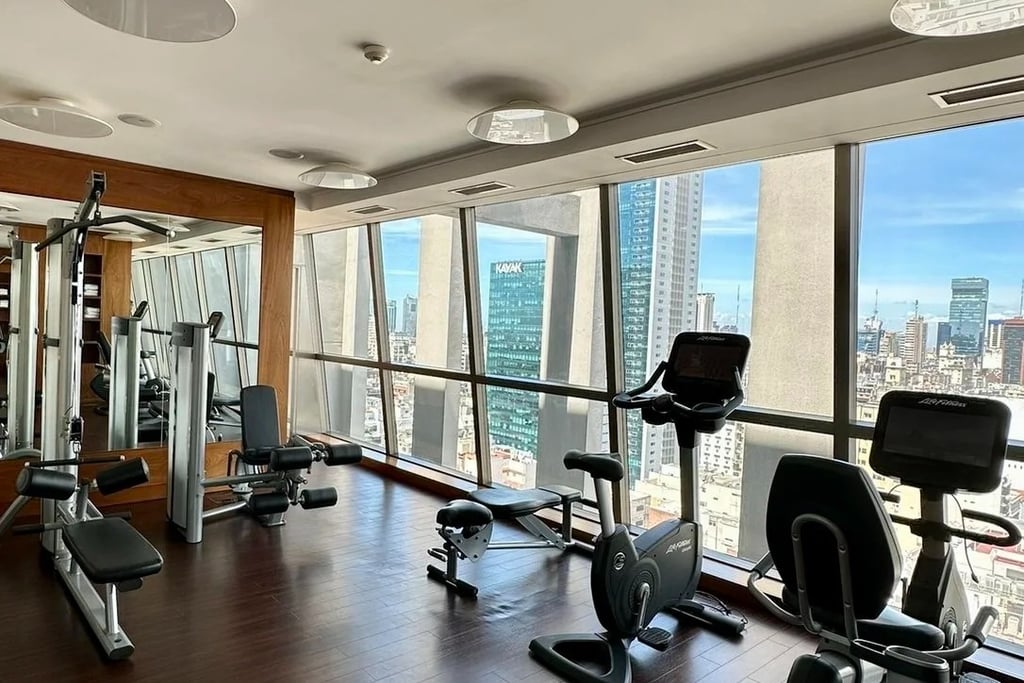 GYM 7/10 The gym sits on the top floor and initially looks promising thanks to floor-to-ceiling windows and sweeping city views. The natural light makes it an enjoyable place to work out, but the equipment itself felt underwhelming. There are two treadmills, two ellipticals, two older bikes, a small free weight setup, a single bench, a leg press machine, and an outdated all-in-one strength machine. The view is fantastic, but the gym itself isn’t particularly impressive.